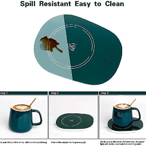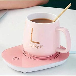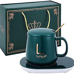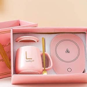 مجموعة مكونة من مج حراري لحفظ درجة حرارة المشروبات مصبنوع من السيراميك مع سخان قابل للتسخين السريع لدرجة حرارة 55 مئوية مزود بغطاء للمج مصنوع من السيراميك وملعقة يأتي بألوان رائعة وتصميم فريد