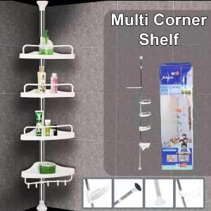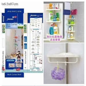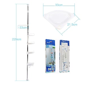 (5) أقطاب وصواني وقضيب قابل للتعديل: يضمن الشد المستمر على طول ارتفاع العمود الذي تحتاجه عن طريق ضبط الجهاز البلاستيكي الثابت، لا ينزلق أو خدش الأسطح. يمكن تخزين الصابون واللوشن والزيوت وكريم الحلاقة وغيرها من الأشياء العميقة أو الطويلة أو الكبيرة على أي من الصنين/السلال الأربعة ذات السعة الكبيرة.